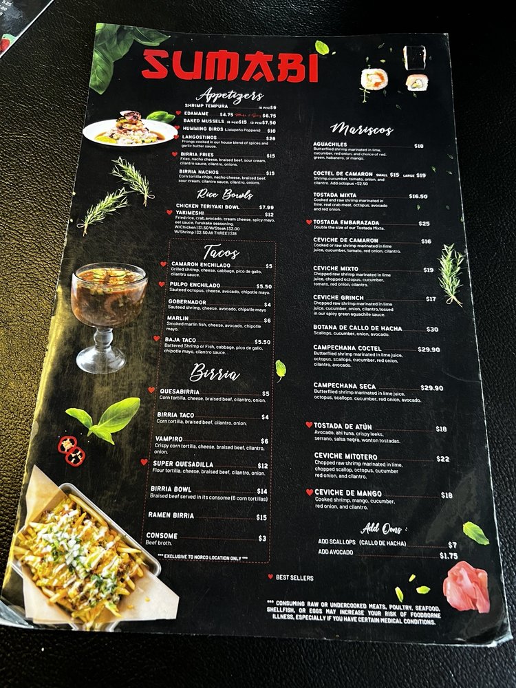 Sumabi- Norco Menu
